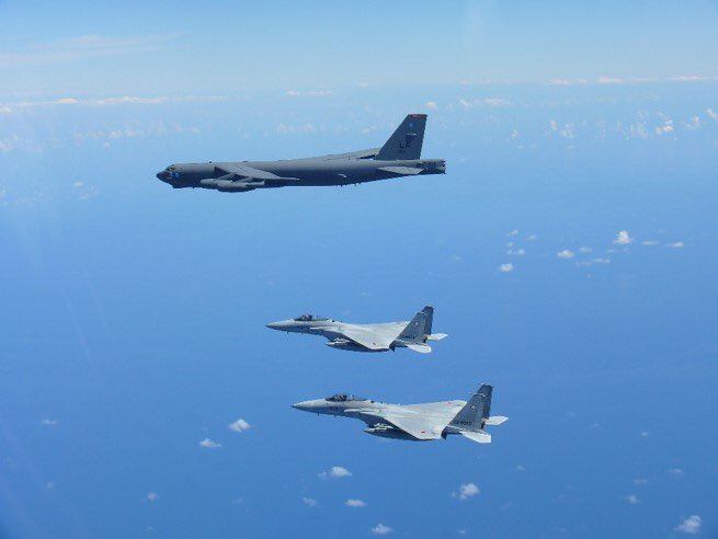 El pasado 27 de agosto la PACAF y JASDF realizaron vuelos de entrenamiento conjunto en el Mar de China Oriental y alrededores de Okinawa con aviones B-52H y F-15J y F-2.